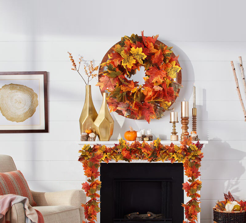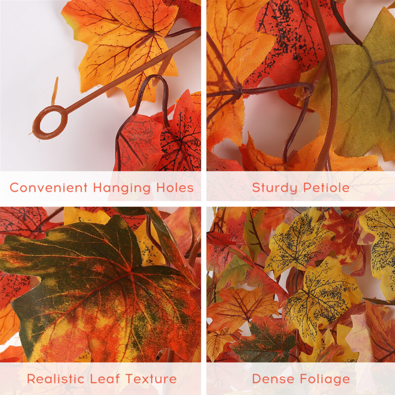 RECUTMS 2 Pack Maple Leaves Fall Garland Decor: Handmade maple leaf that look like real preserved plants, but do not wither, fade or be easily damaged.Suitable for indoor and outdoor decoration in gardens, balconies, bedrooms, birthdays, banquets, weddings, etc.You can fold it if you think it occupies too much space, which can save your space.